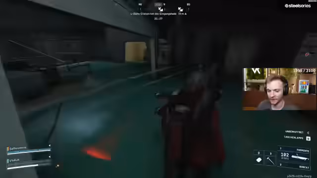 05:08:50Nachdem der Streamer seine Spielzeit auf eine letzte Stunde reduziert, folgt eine extrem actionreiche Runde. Er kommuniziert intensiv mit seinem Team über die Position von Gegnern, die sich nahe dem Exfil-Punkt aufhalten. Es kommt zu einem chaotischen Gefecht, in dem er mehrmals eliminiert wird und seine Mitspiger unter Druck geraten. Die Situation eskaliert, als Gegner von mehreren Seiten gleichzeitig angreifen und das Team überfordert scheint.