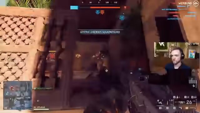 05:18:33Der Streamer bemängelt technische Probleme des Publishers EA, die das Spielerleiden beeinflussen. Er äußert den starken Wunsch, einen Panzer zu steuern, fühlt sich aber ständig beim Spawn behindert und beschwert sich über die langen Warteschlangen. Die In-Game-Anzeigefunktionen von EA stören ihn ebenfalls und müssen manuell deaktiviert werden.