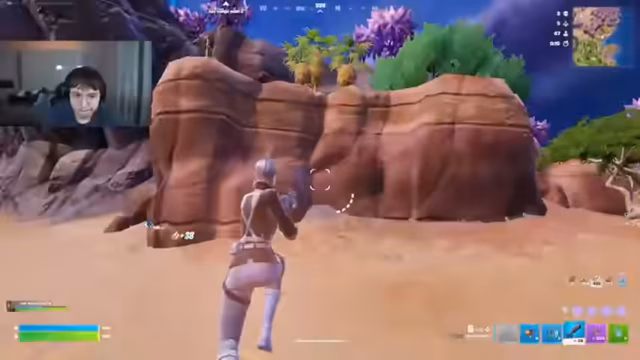 00:22:40Im späteren Teil des Stream begeben sich die Spieler in das Endgame, wo die Zone schrumpft und die Kämpfe härter werden. Der Streamer entscheidet sich für eine vorsichtigere Taktik, indem er sich auf Highground positioniert und sich mit Bauwerken schützt. Er kommuniziert eng mit seinem Teammate, um gemeinsame Bewegungen und Angriffe zu koordinieren und versucht, andere Teams durch gezielte Impulse-Angriffe auszuschalten.