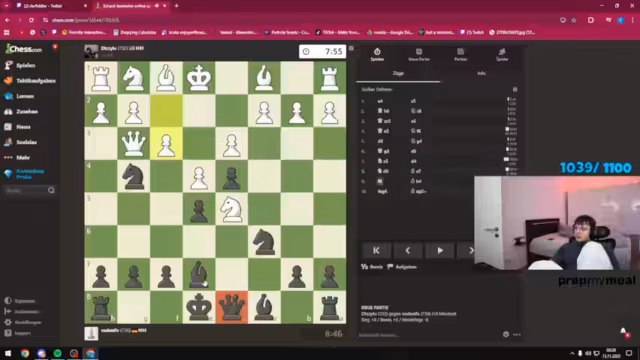 05:00:11Es wird weiter über PrepMyMeal gesprochen, wobei der Streamer erklärt, dass es ideal für Personen ist, die faul sind oder sich nicht mit Ernährung auskennen. Fitnesscoaches könnten ihre Mahlzeiten zwar selbst zubereiten, aber für ihn als Zocker, der abnehmen möchte, sei es perfekt. Er erwähnt, dass er nur einmal am Tag Hunger hat und dann eine Portion isst. Danach wechselt der Streamer zu einem Schachspiel, wobei er feststellt, dass er nicht gut darin ist und sich über seine schlechten Züge ärgert. Er fragt sich, wie er überhaupt zum Schachspielen gekommen ist und äußert Frustration über seine Niederlagen.
