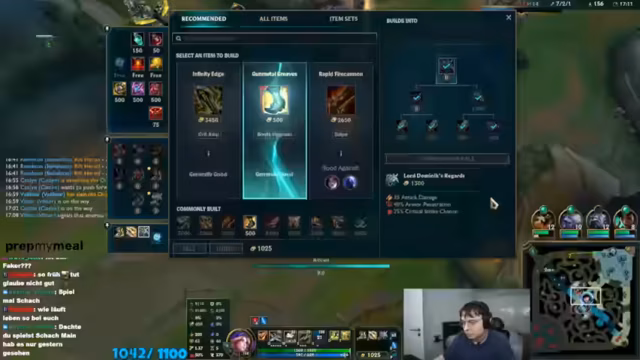 09:11:13Der Streamer überlegt, welche Items er bauen sollte, und erwähnt, dass er immer noch Kraken Slayer spielen könnte, obwohl er eine Regel aufgestellt hat, immer die gleichen vier Items auf Jinx zu bauen, um nicht nachdenken zu müssen. Er zählt seine üblichen Items auf: Juntal, AI, Unans und LDR. Er erkennt jedoch, dass Kraken Slayer in diesem speziellen Spiel, da die Gegner keine Tanks haben, wahrscheinlich besser gewesen wäre. Er diskutiert auch die Möglichkeit, Rapidfire auf Jinx zu spielen, anstatt Hurricane, und betont die Bedeutung strategischer Item-Entscheidungen.
