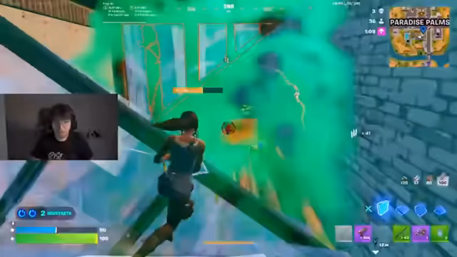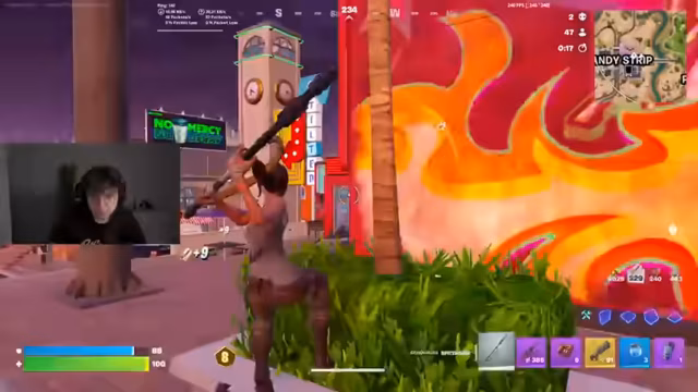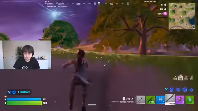 06:00:28Während des Spiels äußert der Streamer massive Frustration über die Spielweise seiner Gegner und das allgemeine Meta. Er beklagt, dass andere Spieler nur unsichtbar durch die Map laufen und nur Tarnbomben verwenden, was er als langweilig und unfaust betrachtet. Seine eigene Strategie ist darauf ausgerichtet, mit zwei mythischen Waffen wie Pump und SMG und Bomben zu gewinnen. Er gerät in hitzige Auseinandersetzungen mit den Chattern, die seine Meinung kritisieren, und versucht, seine taktischen Entscheidungen zu rechtfertigen, während er gleichzeitig seine wachsende Nervosität und Wut über das Spielgeschehen zeigt.