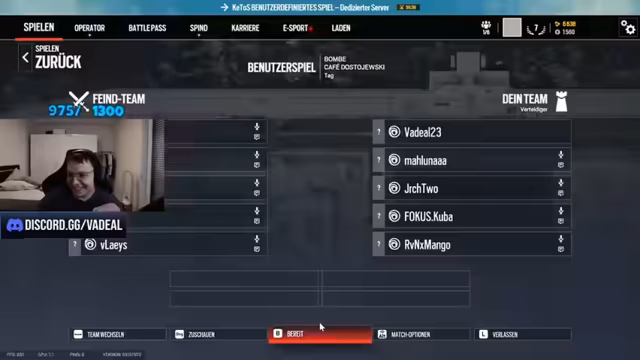 00:30:00Nach den Fortnite-Runden wechselt der Streamer mit seinem Team zu dem Spiel Siege X. Es finden technische Vorbereitungen statt, wie das Einladen in eine benutzerdefinierte Lobby. Die Teammitglieder tauschen sich über ihre Operators aus und einigen sich darauf, den Operator Fenrir zu bannen. Die ersten Runden in Siege X sind von Stress und Kommunikationsproblemen geprägt, was zu einigen Rückschlägen führt. Trotzdem wird nach einem anfänglichen 0-2-Rückstand eine Runde gewonnen.