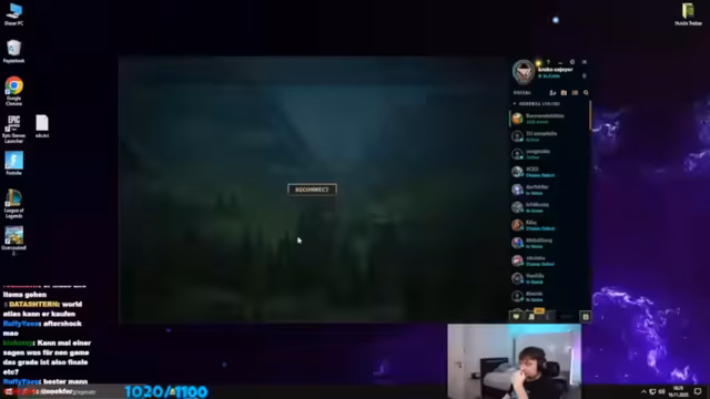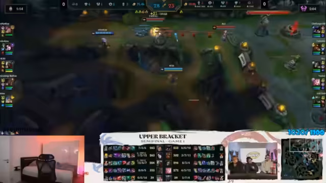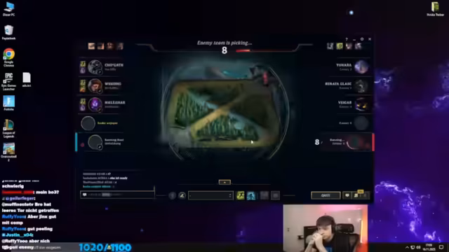 01:23:16Das Team bereitet sich auf das bevorstehende Match vor und wartet auf den Abschluss des Drafts. Es wird die Idee eines League of Legends-Pokals als Hintergrunddekoration erwähnt. Die Spieler diskutieren die Mid-Lane-Matchups und die Champion-Picks, wobei Fizz als aggressiver Pick in Betracht gezogen wird. Es kommt zu technischen Problemen mit dem Kauf eines Support-Items, was zu Verwirrung und der Überlegung eines Remakes führt. Die Teammitglieder versuchen, das Problem zu lösen, indem sie das Item zurückgeben und neu kaufen, während sie gleichzeitig die Möglichkeit eines Remakes in Betracht ziehen, falls das Problem nicht behoben werden kann. Es wird auch die Gefahr eines frühen Invades durch das gegnerische Team besprochen und die Notwendigkeit, vorsichtig auf die Lanes zu gehen.
