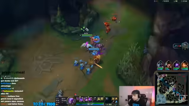 01:41:49Die Spieler besprechen die frühe Spielphase und die Notwendigkeit, vorsichtig auf die Lanes zu gehen, um einem gegnerischen Invade vorzubeugen. Es wird die Bedeutung von Wards und defensiven Spielweisen betont, insbesondere im Jungle. Die Teammitglieder planen ihre Item-Builds, wobei Riftmaker, Relays und Luandris als Kernitems für bestimmte Champions genannt werden. Es wird auch die aggressive Spielweise von Mordekaiser diskutiert und seine Fähigkeit, Power of Evil in der Lane zu kontrollieren. Die Spieler konzentrieren sich darauf, ihren Farm zu sichern und nicht zu früh zu fienden, um im späteren Spielverlauf stärker zu sein. Die Kommunikation über die Positionen der Gegner und die Rotation der Jungler ist entscheidend, um Vorteile zu erzielen.