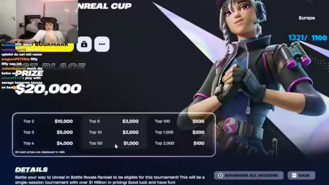 02:55:26Der Unreal Cup wird in neun Tagen stattfinden, und der Streamer plant, mit Trimax als Duo-Partner teilzunehmen. Er ist zuversichtlich, dass sie gemeinsam in den Top 2000 landen können, was Earnings von etwa 100 Dollar pro Spieler bedeuten würde. Die Preisgeldverteilung wird erläutert: Erster Platz erhält 10.000 Dollar, zweiter 5.000 Dollar und dritter 2.500 Dollar pro Spieler. Top 50 erreicht 500 Dollar, Top 10 jeweils 1.000 Dollar. Der Streamer rechnet vor, dass er wahrscheinlich zwischen Top 50 und Top 100 landen und somit 500 bis 250 Dollar pro Spieler gewinnen könnte.