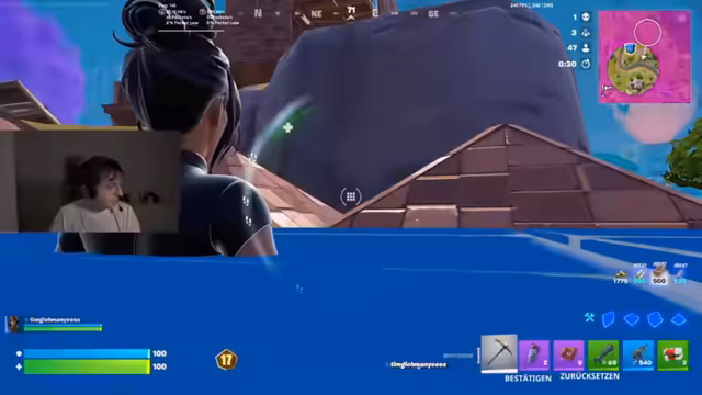 01:10:21Während des Streams spielt der Streamer intensiv Fortnite, wobei er sich auf ein Duo mit dem Partner Diggi konzentriert. Er analysiert seine aktuelle Runde strategisch und plant sein Vorgehen. Sein Fokus liegt darauf, schnell Loot zu sammeln und sich aus einer gefährlichen Zone (POI) zurückzuziehen. Er überlegt, ob er Jetpacks oder Minis für den Abflug benutzen soll, und entscheidet sich für einen ruhigen, aber vorteilhaften Landeplatz, um einen fairen Kampf zu gewährleisten.