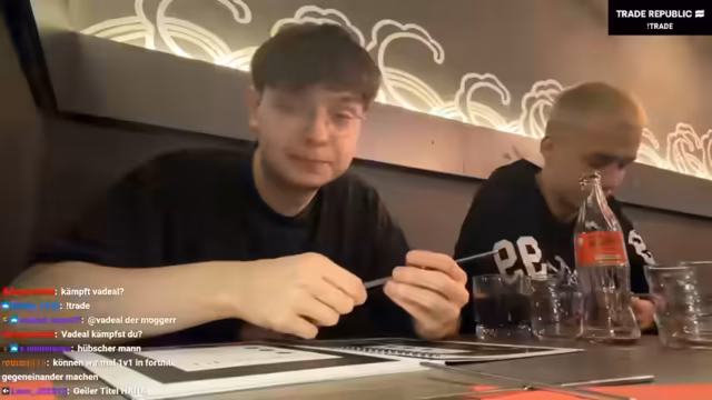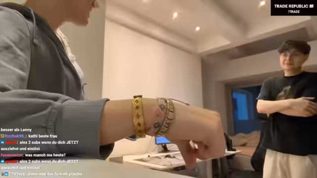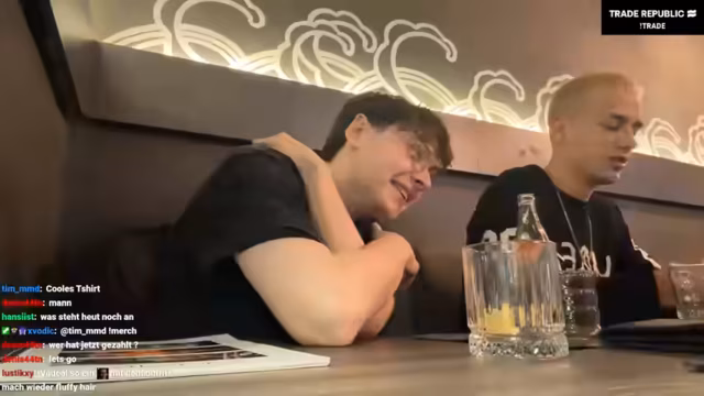 02:55:48Das gemeinsame Tanzen für TikTok führt zu einigen lustigen Pannen und technischen Schwierigkeiten. Da nur ein Handy zur Verfügung steht und die Kamera-Qualität mäßig ist, wirkt das Video auf die Zuschauer gejoggt. Die Szene wird mehrmals wiederholt, und die Jungs probieren verschiedene Tanzschritte aus, wobei sie manchmal die Koordination verlieren. Trotz der Schwierigkeiten bleibt die Stimmung locker und humorvoll. Der Streamer merkt an, dass er das Material privat posten werde und verspricht, alle Kommentare zu liken, um die Interaktion mit der Community zu fördern.