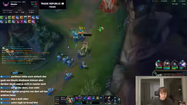 07:15:35Nach einer Pause vom Hauptspiel wird 'League of Legends' wieder zum zentralen Thema. Der Streamer analysiert die aktuelle Meta und gibt Climbing-Tipps. Er äußert die Ansicht, dass fast alle Rollen (Top, Jungle, Bot) derzeit sehr stark sind, mit möglichen Ausnahmen in der Mid-Lane und im Support. Er empfiehlt den Jungle als die effektivste Rolle zum Climben. Zudem werden spezifische Champions wie Aphidus und Pantheon besprochen, wobei ihre Stärken und Schwächen analysiert werden.