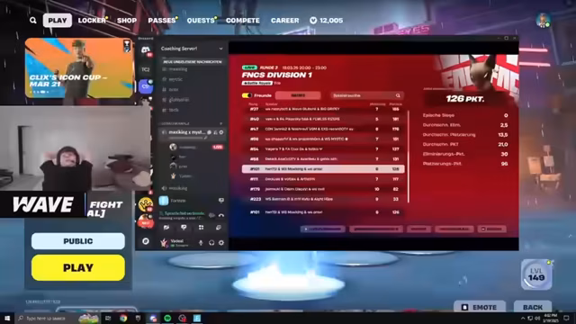 00:38:58Der Streamer und sein Coachee spielen Fortnite zusammen. Es kommt zu vielen technischen Problemen wie Lag und das Spiel startet nicht richtig. Er erwähnt auch, dass sie in einem 'satter Hugo' Video sind und dass sie ein 'Dings' gewonnen haben. Er spricht auch über ein Twitch Rivals Turnier, das am Sonntag stattfindet.