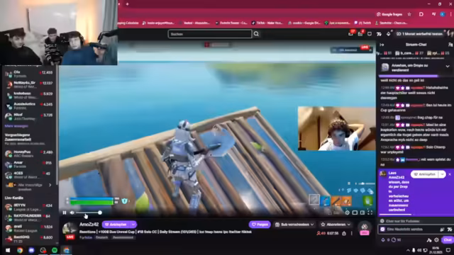 10:44:05Während des Spiels koordiniert der Streamer mit seinem Team Angriffe und Positionierungen. Sie diskutieren Taktiken wie das Übernehmen von Hochpositionen und das Ausnutzen von Jetpacks für Mobility. Der Streamer bemerkt die angespannte Materialversorgung und die Notwendigkeit, schnell zu bauen, um gegen andere Teams zu bestehen. Es kommt zu intensiven Feuergefechten, bei denen sie mehrere Kills erzielen, aber auch Schaden nehmen und sich neu positionieren müssen.