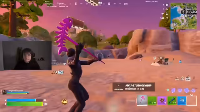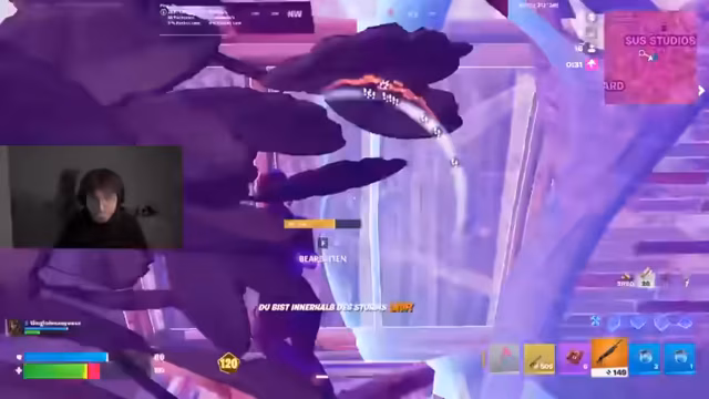 00:11:22Das Endgame der Runde wird von erheblichen technischen Problemen geplagt, insbesondere durch einen extrem hohen Packet Loss von 90%. Trotzdem nimmt der Streamer am Kampf teil. Er berichtet über einen Sieg mit 5 Kills, bei dem er mit einer goldenen Pump geschossen hat. Er ärgert sich über einen missglückten Abflug und die fehlende Kommunikation mit seinem Teamkollegen Alex, der einem anderen Weg gefolgt ist, was zu einem vermeidbaren Tod geführt hätte.