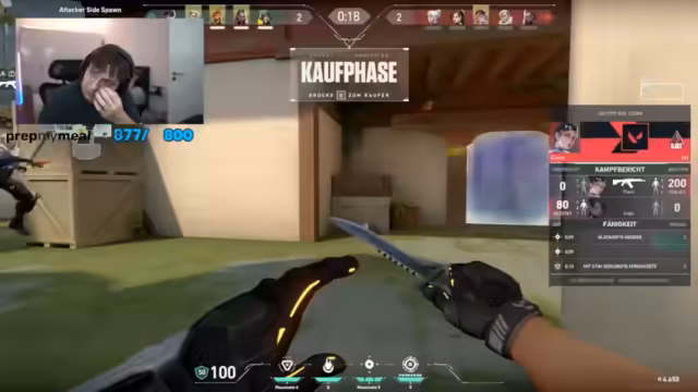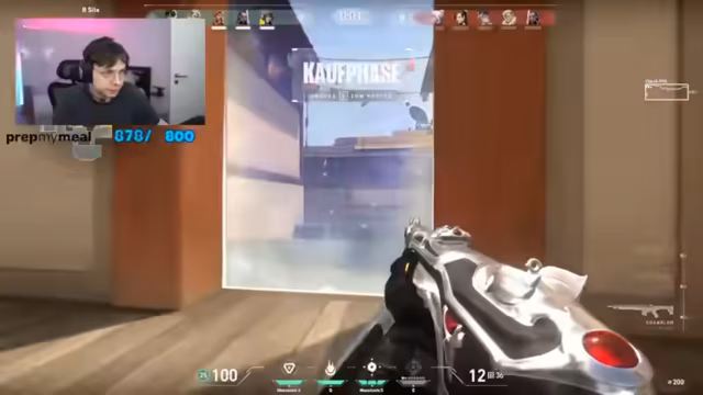 04:12:28Das Streamer zeigt intensive Spielmomente in Valorant, wie zum Beispiel einen Kill mit einer Pistole und einen Bulldog-Zweihandschuss. Er kommuniziert mit seinem Team auf Deutsch und fragt den Chat, ob das schlimm ist. Er erlebt sowohl gute als auch schlechte Runden, mit Kommentaren wie 'WTTF?' und 'schlecht, Mann'. Zwischen den Runden interagiert er viel mit dem Chat, reagiert auf Spenden, spielt Musik und erwähnt, dass er früher viel härter für Rangpunkte gespielt hat, aber jetzt chilliger ist.