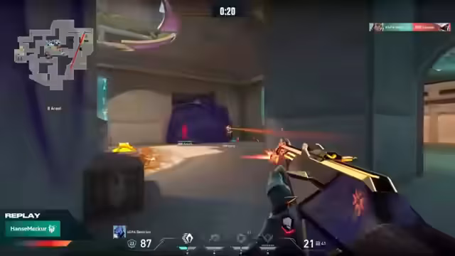 04:06:20Obwohl NXT in Überzahl ist, gewinnt Ryzen eine Runde durch entscheidende Fehler von Kongi von Experian NXT. Nach einem erfolgreichen Plant von NXT durch Mubi hat Kongi zwei ungewöhnliche und leichte Shots verpasst, was den Spike für Ryzen rettete. Diese Runde war ein Wendepunkt. Ryzen zeigte daraufhin eine starke Defensive und antizipierte einen Push von Lele erfolgreich. Hazy trug mit guter Awareness zum Sieg bei. Der Moment, in dem Kongi nach dem verpassten Shot den Kopf schüttelte, wird als Zeichen von Frustration und mentalem Druck gewertet.