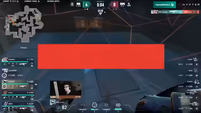 02:04:04Nach der technischen Pause setzt R seinen dominanten Spielstil fort und gewinnt nahezu jede Runde. Die Taktik von 6GPA wirkt uninspiriert und vorhersehbar, während R insbesondere durch die herausragende Leistung von Bucher, der in fast jeder Runde mehrere Kills holt, das Spiel kontrolliert. 6GPA kann dem Ansturm von R nichts entgegensetzen und gerät schnell mit 0:3 in eine aussichtslose Situation.