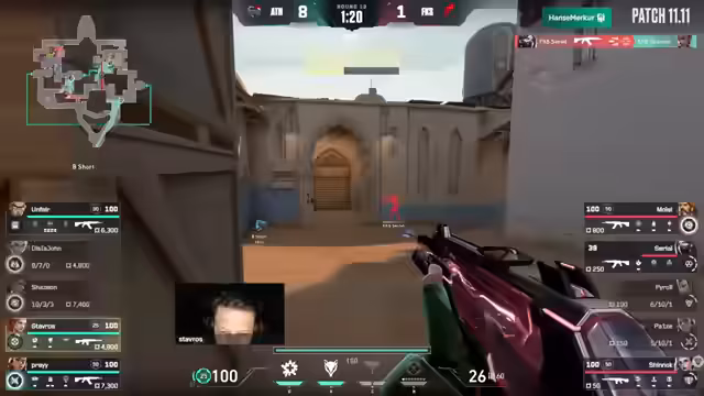 03:17:05Nach einem ersten Timeout bei Fokus stabilisiert sich das Team langsam. Die Kommunikation scheint sich zu verbessern und es kommt zu ersten Erfolgen. Alternate Attacks agiert aber weiterhin sehr dominant, insbesondere auf der B-Seite. Die Double-Duellist-Kompensation mit Chamber erfordert ständiges Agieren, was Fokus immer wieder unter Druck setzt. Trotzdem wächst langsam das Selbstvertrauen bei Fokus, während Alternate Attacks seine Furtherung ausbaut.