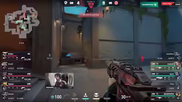 01:00:59Der Stream beginnt mit der Beobachtung eines anderen Spiels und springt dann zurück zur Partie SGE gegen CGN. In der ersten Runde demonstriert Musashi von CGN ein riskantes Solo-Spiel, um den Spike in Richtung B zu bringen, was jedoch nicht bestraft wird. In der anschließenden Anti-Eco-Runde für Frankfurt wird Azuri zum Matchwinner mit einem Full House, was den Anfang einer beeindruckenden Performance für das Team markiert. Die Aktionen sind schnell, aggressiv und zeugen von hohem Selbstvertrauen.