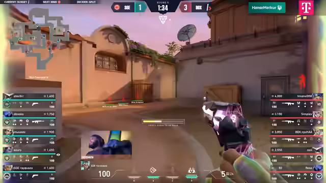 04:29:48Das Spiel zwischen Bodax und Eintracht Frankfurt ist weiterhin extrem eng, mit einem Stand von 5 zu 5. Bodax muss diese Map unbedingt gewinnen, um ihre Playoff-Chancen aufrechtzuerhalten. Normalerweise möchte man in der Defense auf Bind mit einer Führung in die Halbzeit gehen, doch Bodax ist mit dem bisherigen Verlauf nicht ganz zufrieden, obwohl sie eine spezielle, aber effektive Double-Controller-Komposition spielen. Sie müssen die erfahrenen und starken Spieler der Eintracht respektieren. In der vorletzten Runde der ersten Halbzeit beginnt Simplex mit einem Flash, und Bodax zeigt sich gut, obwohl sie unter Druck stehen. Ein Triple Hooker-Push wird versucht, und obwohl er nicht ganz wie geplant verläuft, erzielt Conversion-Path wichtige Treffer. Obnox behält die Nerven, während Nisha nur einen Frag erzielt. Trotz einer Flash und eines langen Brimstone-Smokes kann Nisha in dieser Runde nicht viel ausrichten und rettet seine Waffe, was zur sechsten Runde für Eintracht Frankfurt führt. Die SGE hat somit die Chance, mit einer Führung in die Halbzeit zu gehen, was die Fans positiv stimmen dürfte.
