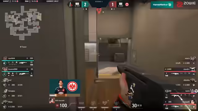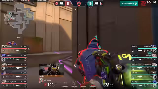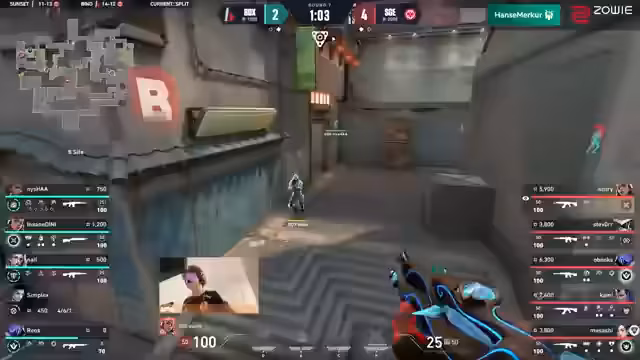 04:50:32Kami ist in dieser zweiten Hälfte weniger präsent und gibt einige First Bloods ab. Musashi pusht mit der Odin weit an B entlang und könnte Informationen liefern. Es scheint, als ginge es auf A, wo Obnox wartet. Dini gewinnt das Duell, und der Spike wird ohne Probleme auf den Spot gebracht. Azuri darf nicht ignoriert werden und erzielt zwei Kills, darunter Rios. Stevie macht es zu einem 2 gegen 2. Musashi wird erfolgreich gegen Neil, während Nisha on fire ist und das Duell gewinnt. Bodax gewinnt den Clutch, was Eintracht Frankfurt in die Eco zwingt. Es sieht nach einer dritten Map aus. Die Runden sind extrem eng, und Kleinigkeiten entscheiden. Bodax steht kurz vor dem Map-Point. Eintracht Frankfurt spielt auf Zeit, während Bodax versucht, späte Executes zu fahren. Obnox verteilt Schaden, und Nisha wird erwischt. Kami schaut rechtzeitig raus, doch der Viper Split ist da. Der Plant ist das Wichtigste für Bodax, aber Rios kann nicht überrascht werden. Musashi hat noch einen Horn, der im Viper Split nicht viel bringt. Nisha erzielt den dritten Kill, und Bodax Gaming erreicht den Map Point. Eine Runde noch, und es geht auf die dritte Map, Split. Bodax zeigt sich eiskalt, selbst mit 20 Sekunden auf der Uhr. Ein früher Viper Split wird gespielt. Es sieht nach einem Push auf A aus.