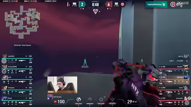 04:35:47Musashi zieht sich zurück, nachdem er Kontakt hatte. Die Spieler von Bodax entscheiden sich, sich zurückzuziehen und zum Team aufzuschließen, da der Spike vor A liegt und nur noch 50 Sekunden verbleiben. Obnox schließt sich dem Team am A-Spot an, doch der Push wird schwierig. In einem entscheidenden Moment wird Obnox in einem Smoke perfekt gecheckt, überlebt aber auf unerklärliche Weise, was Dini und Nisha verwirrt. Nisha erzielt schließlich den Kill, doch Obnox' Überleben hätte die Runde fast entschieden. Bodax Gaming gewinnt erneut die Pistol-Runde, was die Hoffnungen des Herausforderers im Kampf um die Playoffs stärkt. Obnox erkennt sein Glück, dass er überhaupt noch einen Frag setzen konnte. In der folgenden Eco-Runde ist Bodax im Vorteil, da nur Obnox eine Sheriff besitzt. Musashi versucht einen Schuss, der nicht trifft, und Kami spottet Nail an der Marshall. Bodax scheint auf B abzuzielen, der stärkeren Seite der SGE. Nail erzielt einen sauberen Headshot-Flick auf Kami, was Druck auf den A-Spot ausübt. Trotzdem schleichen sie sich an und müssen den Spike holen. Obnox ist alleine, kassiert aber einen Hit. Rios erzielt einen schönen Shot gegen Obnox, der Sensor wird zerstört, und der Spike wird gepflanzt. Frankfurt hat kaum Chancen im Retake.