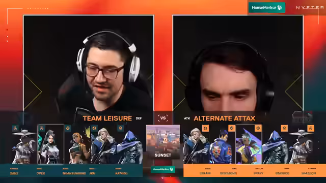00:25:10Leisure's einzige Aufgabe ist es, ATN das Leben schwer zu machen. Coffeeshop hat die Chance, mit einem Sieg gegen CGN sogar den ersten Platz zu erreichen und die erste Playoff-Runde zu überspringen. In einem Interview mit Benni, dem Assistant Coach von Alternate Attics, und Opex von Leisure, wird die Situation der Teams beleuchtet. Opex bestätigt, dass Ben und Bao heute nicht dabei sein können, aber das Team motiviert ist. Benni betont, dass ATN gewinnen muss, da sie genug Niederlagen eingefahren haben. Er erwartet, dass Prey und This Is John Leisure vom Server schießen werden, da Prey wütend ist und John immer abliefert. Opex erklärt, dass Leisure trotzdem ein Feuerwerk abliefern will, da sie bereits einmal gegen ATN gewonnen haben. Die Agentenwahl zeigt Sage im Line-Up von Team Leisure und Yoru bei Alternate Attics. Dies führt zu einem Duell zwischen aggressiver Offensive (Double Duelist bei ATN) und defensiver Stärke (Double Sentinel bei Leisure). Quantum Reno spielt Raze bei Leisure, und Joker ist ein erfahrener Initiator. Leisure's aimstarke Spieler, insbesondere Opex mit Sage, können unangenehme Winkel kreieren. ATN hat viel Dive-Potenzial, um die Tripwires zu zerstören. Das erste Match beginnt auf Sunset.