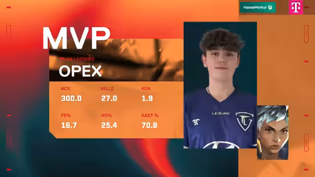 01:16:33Die Leistung von This Is John auf Sunset wird als bombastisch beschrieben, wobei er sich als MVP der Map etabliert. Mit 28 Kills und einem ACS von 248 setzt er ein klares Statement und zeigt, wie gut er sich in das Roster von Alternate Attax eingefunden hat. Seine Dominanz war so groß, dass seine Teamkollegen kaum Gelegenheiten für Kills hatten. Trotz des klaren Sieges von Attax auf Sunset wird der Map-Pick von Leisure für Corrode als potenzieller Stolperstein für Attax gesehen, da sie in der Vergangenheit auf dieser Karte gegen Leisure verloren haben. Leisure hofft, auf Corrode einen Ausgleich zu erzielen und das Match in eine dritte Karte zu zwingen, während Attax auf einen schnellen 2:0-Sieg abzielt.