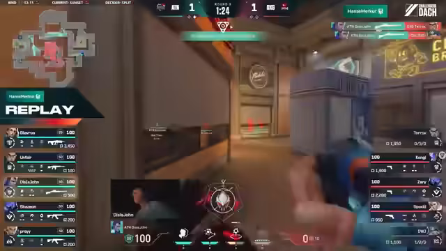 05:00:20Die zweite Map ist Sunset und beide Teams passen ihre Spieler-Lineups an. Alternate Attacks ersetzt Neon durch Yoru, um mehr Flexibilität zu haben. Dortmund E-Sports setzt auf eine Neon-Jett-Kombo und Sova als Initiator. Dies deutet auf einen taktischen Kampf im Mid-Game hin. Die Anfangsrunden auf Sunset zeigen bereits, dass beide Teams aggressiv spielen und versuchen, frühzeitig die Map-Kontrolle zu erlangen.