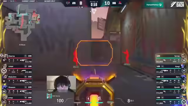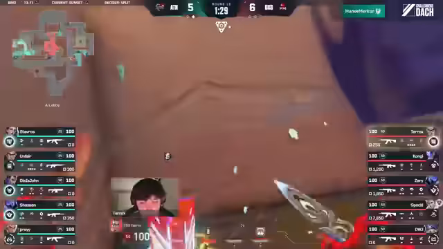 04:14:10Alternate Attacks stabilisiert seine Verteidigung und nutzt breite Map-Kontrolle, um die Angriffe von Dortmund abzuwehren. Spieler wie Spocky liefern herausragende 4K-Kills. Gleichzeitig kämpft Dortmund um die Spike-Platzierung, was zu tumultartigen Situationen führt. Das Spiel ist ein ständiger Schlagabtausch mit taktisch anspruchsvollen Entscheidungen und oft sehr knifen Rundenverläufen.
