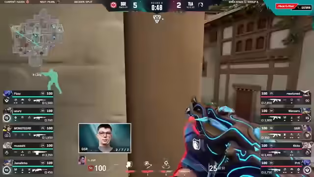 00:03:09Haven, Pearl und Split wurden als Maps ausgewählt, was eine überraschend traditionelle Map-Pool-Auswahl darstellt. Die Kommentatoren betonen, dass dies ein guter Map-Pool für Eintracht Frankfurt ist, der ihnen in ihren gewohnten Strategien zugutekommt. Im ersten Half-Buy von Eintracht Frankfurt zeigt sich eine starke Offensive, insbesondere durch Monster, der mit seiner Jett-Aggression und einer beeindruckenden Judge entscheidende Kills erzielt und einen klaren Vorteil für sein Team schafft.
