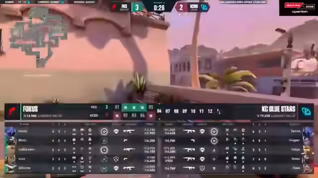 03:12:01Bei einem knappen Spielstand von 9:10 für Fokus gegen KCBS wird die Spannung am höchsten, als sich Fokus in der letzten Runde eines Maps nur noch einen Punkt vom Sieg und dem Einzug in die Playoffs trennt. Die Kommentatoren beschreiben den engen Kampf um jede Position und die taktischen Umschwünge zwischen den Teams. Spieler wie Xass glänzen mit hot Streaks, während Fokus mit einer strategisch klugen Rückeroberung des Spike-Carriers die Runde zu einem sensationellen Arbeitssieg bringt und das Match auf 11:11 zieht.
