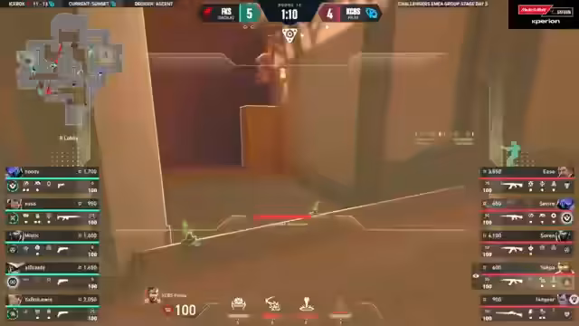 02:09:56Bei 10:11 für Karmine Corp. droht Fokus eine ernste Niederlage. In der defensiven Phase nutzen die Franzosen erfolgreich ihre Ultimates, besonders den Rolling Thunder, um Druck aufzubauen und Xass zu eliminieren. Der Angriff von Focus auf den A-Spot scheitert an einer starken Positionierung der Viper. Trotz Überzahl verpasst Focus den Spike-Plant und die Runde. Joppa kontert mit einem Double-Kill, doch der Versuch, den Punkt wieder auszugleichen, scheitert knapp am fehlenden Zeitfenster, was die Spannung weiter treibt.