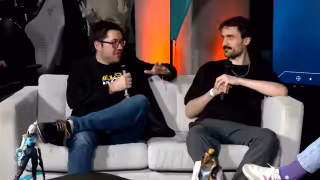 04:19:19Mit dem letzten Sieg auf Abyss ist CGN zum fünften Mal Deutscher Meister. Die Kölner Fans feiern den Sieg ausgelassen in der Experion Arena. Spieler und Coaches wie Vince und Capio genießen den Triumph, nachdem sie einen beeindruckenden Lower Bracket Miracle Run bis ins Finale absolviert hatten. Die feiernde Stimmung unterstreicht den Erfolg und die Gemeinschaft im Team.