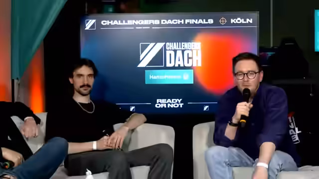 00:00:08Der Stream begrüßt die Zuschauer zum Hanse-Merkur-Challengers-Dach-Finale in Köln und startet mit einem unterhaltsamen Skirmish-Duell. Zwei Content Creators von CGN treten gegen zwei Zuschauer an, um 100 Euro Valorant Points zu gewinnen. Das Spiel ist von Anfang an sehr knapp und verläuft über die volle Distanz von 20 Runden. Trotz einer Führung von CGN schaffen es die Zuschacher am Ende knapp mit 10 zu 9 zu siegen.