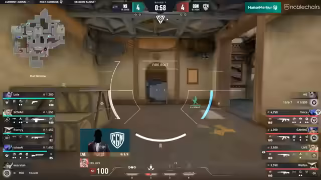 04:30:28CJN kämpft darum, aus einem Economy-Engpass herauszukommen, während Kaltstadt versucht, die Führung zu halten. Eine Info-Jump in der Mitte enthüllt die Position von Fade, doch ein Rack'n'Bolt verfehlt sein Ziel. Die Fade bleibt unentdeckt, was für CJN im Late Game ein Vorteil sein könnte. Die Runde spitzt sich zu, als Lele einen Trade mit der Shorty erzielt und Erstlar mit dem Spike plant. Trotz eines Viper Pits und der Arbeit von Nido gelingt es Vince von CJN fast, den Defuse durchzuziehen, doch Kaltstadt gewinnt die Runde mit nur 0,5 Sekunden Vorsprung. Die zweite Map bleibt spannend und knapp, da beide Teams ihre Qualität unter Beweis stellen und CJN die Ultimate des Phoenix effektiv einsetzt.