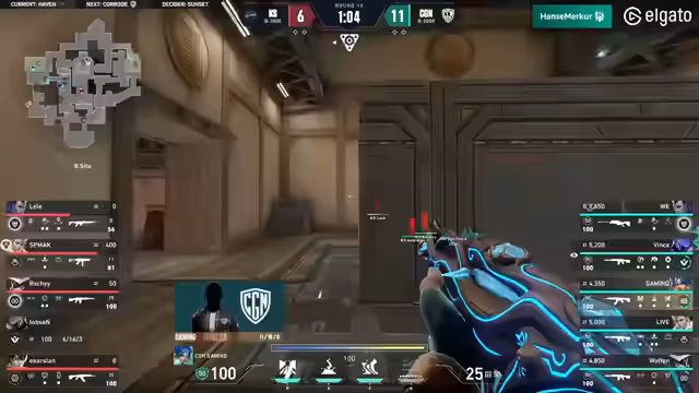03:19:34Das zweite Match des Abends beginnt mit Kaltstart in der Defensive auf Haven, die sich auf Garage und den B-Eingang konzentrieren und ein starkes Crossfire-Setup nutzen. CGN startet aggressiv, erzielt einen frühen Kill, aber Kaltstart kann den Trade sichern. Trotzdem sichert sich CGN die Side, und Vince erzielt einen Doppelkill, wodurch CGN die erste Runde gewinnt. CGN investiert teuer in Bulldogs und Phantoms und konzentriert sich auf die Kontrolle von A-Long, einer wichtigen Map-Kontrollposition. Obwohl Kaltstart A-Long gut abschirmt, gelingt es CGN, über die Mitte nach C zu rotieren und weitere Kills zu sichern, wodurch sie die Führung ausbauen. SPMAC von Kaltstart versucht, sich mit der Odin zu behaupten, aber CGN zeigt eine gute Teamarbeit und Map-Kontrolle. Richie von Kaltstart, bekannt für seine starken Leistungen in der letzten Saison, zeigt sich ebenfalls. Im weiteren Verlauf des Matches gelingt es Kaltstart, durch einen Iso-Play und schnelle Kills von Erslan, die dritte Runde in Folge zu gewinnen und das Mainteam im Retake zu überlisten. Der Fake von CGN, Druck nach C zu suggerieren, wird von Kaltstart durchschaut, und sie nutzen die Unkoordiniertheit von CGN aus, um weitere Runden zu sichern. Kaltstart zeigt eine unglaublich kontrollierte Spielweise und dominiert das Match.