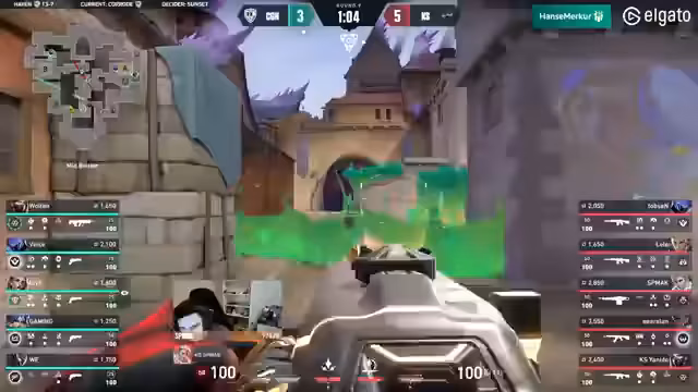 04:28:11Kaltstadt zieht mit Vollgas durch und nutzt Ultimates effektiv. Nach einem ausgeglichenen Spiel, in dem Kaltstadt durch Janido ein Opening erzielt, wird das Spiel wieder auf vier gegen vier ausgeglichen. Kaltstadt arbeitet sich langsam nach vorne und entscheidet sich für ein aggressives Spiel in Richtung Mitte, um die Karte zu splitten. Trotzdem riecht CJN das Play, und Vince positioniert sich in einem Offangle. Kaltstadt sichert sich die Führung durch vier Runden in Folge, was CJN zu einem möglichen Timeout zwingen könnte. Das Team zeigt eine unfassbar gute Moral und gewinnt die wichtigen Runden, obwohl es Fehler macht und nicht immer auf die Aktionen von CJN reagiert.