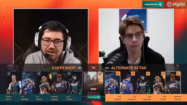 00:17:50Die Ergebnisse der letzten Woche werden vorgestellt: RR verlor gegen Gesichtenhausen, Kaltstadt gewann gegen Ryzen, 6GPA gegen Bodax, CJ in eSports gegen Eintracht Frankfurt und Coffeeshop besiegte die Small Crew. Alternate Attax verlor gegen Leisure. Die Small Crew, als höchster Verlierer, wählte Eintracht Frankfurt, ein Team ohne Bounty, was eine taktisch fragwürdige Entscheidung darstellt, da kein Cashout gewonnen werden kann. Alternate Attax entschied sich für Coffeeshop. Das Line-Up von Alternate Attax für heute besteht aus Stavros, Unfair, Prey, Chazea und Ceri, der Siad ersetzt. Ceri, ehemals von NXT, erhält die Chance, sich zu beweisen. Coffeeshop tritt mit Kusa, Hafti, Connor, Wacki und Kuro an. Kusa ist aktuell der beste Spieler des Pokals nach Runde 1 mit 333 ACS. Hafti hatte im Interview scherzhaft behauptet, sie würden nur auf Aim spielen, doch Wacky zeigte starke Sova-Utility. Coffeeshop wird als ernstzunehmender Gegner eingeschätzt, der Schaden anrichten kann.