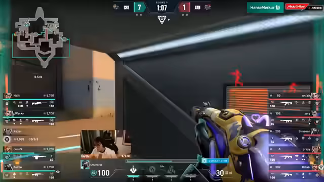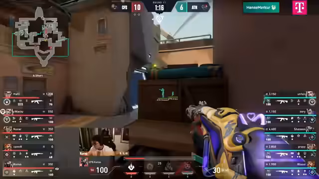 01:26:14Das Comeback von ATX ist in vollem Gange, und sie zeigen eine beeindruckende Widerstandsfähigkeit. Das Team findet langsam wieder zusammen und stellt sich aufeinander ein. Hafti von Coffeeshop hat zwar seine Ultimate zur Verfügung, aber ATX nutzt Prey, um wichtige Entries zu erzielen. Trotz einiger Rückschläge für Prey, gelingt es ATX, die To the Force von Coffeeshop zu kontern und durch eine starke B-Defense weitere Runden zu gewinnen. Das Spiel ist auf einmal wieder ausgeglichen, und ATX glaubt an die Möglichkeit eines Sieges. Prey und Seri sind die Gesichter dieser zweiten Hälfte, die mit aggressiven Plays und wichtigen Kills glänzen. Coffeeshop gerät zunehmend unter Druck und muss ein Timeout nehmen, da die Nerven blank liegen. ATX gleicht zum 10-10 aus, was ein unglaubliches Comeback darstellt.