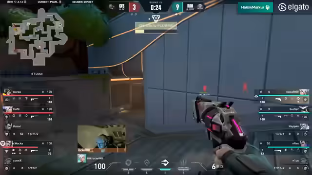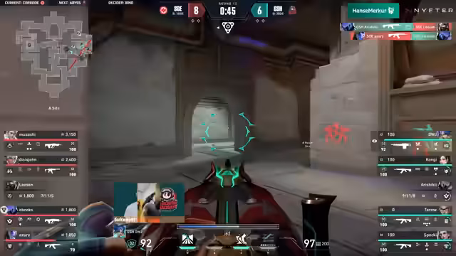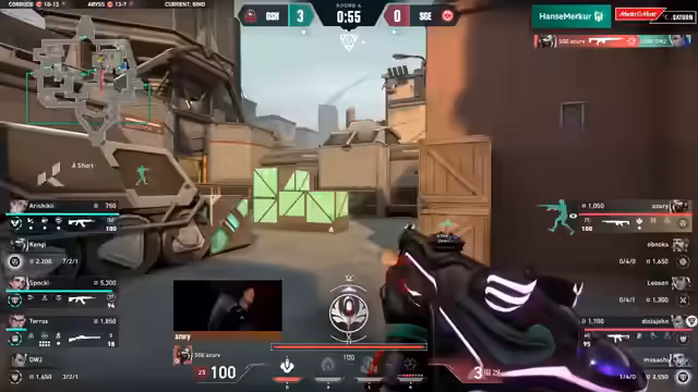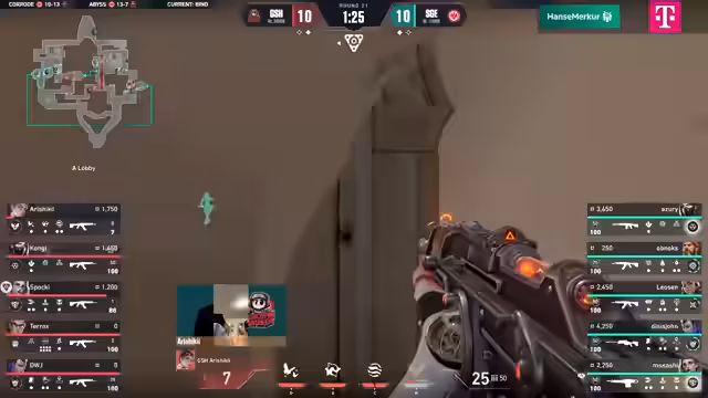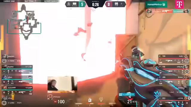 02:43:32Die Pistol Round auf Bind startete aggressiv, wobei Eintracht Frankfurt auf einen A-Push setzte, der jedoch von Terox' Headhunter gestoppt wurde. Trotzdem gelang es Frankfurt, den Spike aufzuheben, aber Spocky sicherte Gesichtenhausen eine Flawless-Pistol-Runde. Frankfurt war in der nächsten Runde zu einer Eco gezwungen und versuchte es mit einem Fake-TP, doch Darkwing Jet fand einen entscheidenden Kill. Kongi sicherte Gesichtenhausen die zweite Runde mit einem 3K. Trotz des Rückstands zeigte Frankfurt Kampfgeist und konnte mit Classics bewaffnet zwei Kills erzielen und den Spike platzieren. In der Bonusrunde zeigte Kongi eine herausragende Leistung mit einem 3K und sicherte Gesichtenhausen die dritte Runde. Frankfurt kämpfte weiter, und John zeigte immer wieder starke individuelle Plays, um sein Team im Spiel zu halten. Azuri gelang ein wichtiger 1-gegen-2-Sieg in der Viper's Pit, was Frankfurt die erste Runde auf dem Scoreboard einbrachte. Trotz des Rückstands zeigte Frankfurt eine verbesserte Reaktion auf die Rotationen von Gesichtenhausen und zwang sie zu Fehlern.