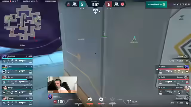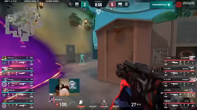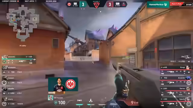 00:59:54Die ersten Runden des Spiels waren geprägt von schnellen und explosiven Executes auf den B-Spot, wobei Gesichtenhausen früh die Kontrolle übernahm. Trotz eines Doppelkills von Hutt und TP, die die Runde für Frankfurt entschieden, zeigte Musashi von Gesichtenhausen eine starke Leistung, indem er einen Kill gegen Spocky erzielte und die Waffen der Gegner teuer machte. Die Reserve von Gesichtenhausen wirkte stabil, was ihnen ermöglichte, verlorene Waffen zu kompensieren. Frankfurt hatte Schwierigkeiten, sich mit der Wahl von Corot und Obnox im Team anzufreunden, da Corot in der Defensive nicht einfach zu spielen ist. Darkwing Jet von Gesichtenhausen zeigte sich mit hohem Schaden, während Frankfurt mit einem guten Bait für John ein Opening gegen Spocky erzielen konnte. Terrox gewann ein wichtiges Duell in der Mitte, und Azuri von Frankfurt schaltete Arishiki aus, was Gesichtenhausen die Smokes nahm. Trotzdem gelang es Kongi, die Mitte zu durchbrechen, was zu einem 3K für Azuri führte und den Ausgleich für Eintracht Frankfurt brachte. Der Schlagabtausch war heftig, und beide Teams mussten ihre Economy im Auge behalten.
