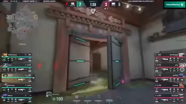 02:49:29FOKUS und MKF liefern sich ein intensives Duell auf der Map, wobei taktische Entscheidungen und rotations eine große Rolle spielen. Hoodie versucht über die Mitte zu rotieren, doch MKF stellt sich gut auf. FOKUS hat ohne Mitte-Kontrolle Schwierigkeiten in der Kurz. Alorante muss sich für eine Guardian positionieren. Grafnet wird eingesetzt, findet aber keine Zielen. MKF gibt unter Druck nach, als Zera einen Spieler von hinten eliminiert und FOKUS die Runde in 30 Sekunden gewinnt. FOKUS konvertiert einen strategischen Spike-Plant und nutzt ihre Eco-Runde effektiv, während Waylay eine Ulti einsetzt. Die Rundenverteilung bleibt ausgeglichen, mit anspruchsvollen Holding-Spielen von FOKUS und starken Executes von MKF.