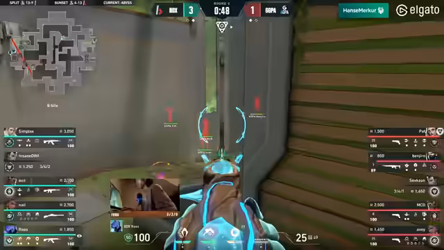 02:56:21Die dritte Map auf Abyss beginnt mit einem schnellen First Blood für 6GPA, die direkt die erste Runde für sich entscheiden und ein aggressives, gebündeltes Vorgehen zeigen. Bodax Gaming kontert jedoch stark und sichert sich die folgenden Runden, darunter eine wichtige Eco-Runde, die das Momentum dreht. Besonders hervorzuheben ist die Leistung von Yui, der in mehreren Runden entscheidende Kills erzielt und Bodax in vorteilhafte Situationen bringt, selbst unter hohem Druck und mit geringer Gesundheit. Trotz des frühen Rückschlags zeigt Bodax Gaming eine disziplinierte Spielweise und kontrolliert den Raum effektiv. 6GPA versucht, durch gezielte Angriffe und das Ausnutzen von Weak Spots, insbesondere auf B, wieder Fuß zu fassen. Die Economy-Kontrolle spielt eine entscheidende Rolle, wobei Bodax trotz eines Force-Buys in der Lage ist, die Buy-Runde zu halten. Die Teams liefern sich ein Kopf-an-Kopf-Rennen, wobei beide Seiten proaktiv agieren und versuchen, die Kontrolle über die Map zu erlangen.