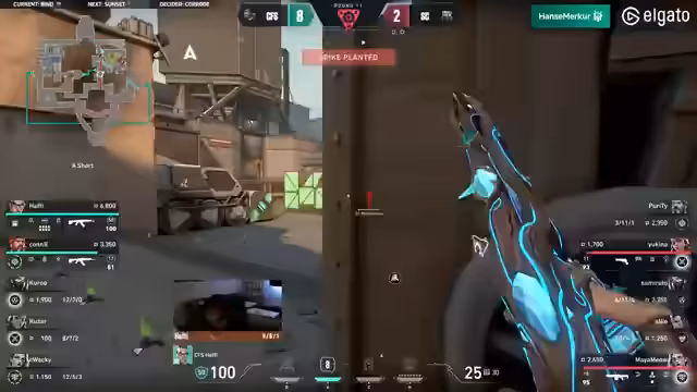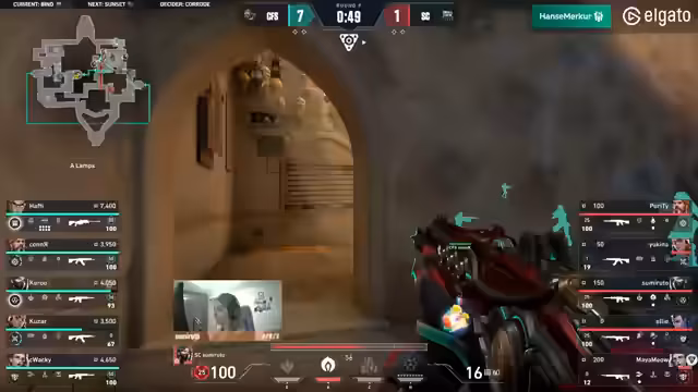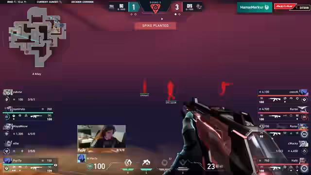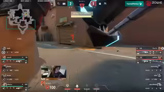 05:12:12Coffeeshop zeigt weiterhin Disziplin und gewinnt die zweite Runde, indem sie einen A-Contact wählen, der sich als richtige Entscheidung erweist. Hafti und Kusa zeigen starke individuelle Leistungen, wobei Kusa in der Bonusrunde einen Overdrive online hat. Trotz eines aggressiven Starts der Small Crew in der Mitte, muss Ellie zurückweichen. Coffeeshop konzentriert sich weiterhin auf A-Rampe. Purity wird von Hafti erwischt, doch die Small Crew hält den Spot. Coffeeshop wartet geduldig, und Kusa gelingt ein beeindruckender Schuss gegen Mayamao in einem 1-gegen-2. Obwohl Kusa fast die Bonusrunde für Coffeeshop gewinnt, indem er den Spike hinter einer Box antippt, kann Zumi die Runde für die Small Crew klinchen. Dies war eine sehr knappe Situation, die die Small Crew nur durch die frühe Aggression von Coffeeshop und ein starkes 1-gegen-1 von Sumi gewinnen konnte. Die Small Crew hat jedoch finanzielle Schwierigkeiten, während Coffeeshop weiterhin Druck ausübt.