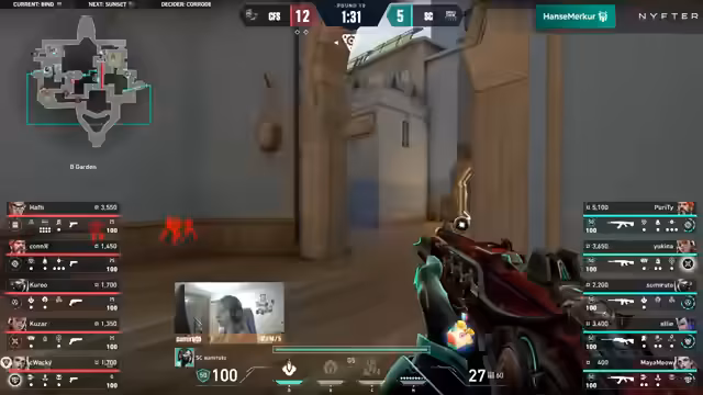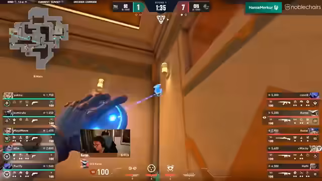 05:17:04Trotz des knappen Sieges in der Bonusrunde ist die Small Crew finanziell angeschlagen und muss sparen, während Coffeeshop weiterhin stark auftritt. Die Small Crew investiert in eine Operator für Ellie, um das Blatt zu wenden. Hafti von Coffeeshop zeigt erneut seine Utility-Kenntnisse, wird aber von Ellies Operator eliminiert. Zumi erzielt einen Doppelkill, was Connor in eine schwierige Lage bringt. Sumi schnappt sich Connor, bevor dieser den Spike aufnehmen kann, was ein geplantes TP-Play verhindert. Die Small Crew sichert sich die Runde und bleibt im Spiel, hat aber weiterhin den Druck, jede Runde gegen den Matchpoint der Gegner gewinnen zu müssen. Coffeeshop nimmt ein Timeout, um sich zu beraten und die Map schnell zu beenden. Trotzdem gelingt es der Small Crew, eine weitere Runde zu gewinnen, indem sie einen Team-Ace erzielen und ihre Ult-Ökonomie verbessern. Haftis Tour de Force wird von Ellie gestoppt, doch Kuro gewinnt ein 1-gegen-1. Am Ende sichert sich Coffeeshop die erste Karte mit 13 zu 6. Hafti wird für seine flunkerten Aussagen über die Utility-Nutzung seines Teams scherzhaft kritisiert, da Coffeeshop eine starke Leistung zeigte. Die Small Crew kam zu spät ins Spiel, zeigte aber am Ende gute Ansätze. Nun geht es auf Coffeeshops Map-Pick Sunset, wo erwartet wird, dass sie möglicherweise wieder Reyna und Cypher spielen.