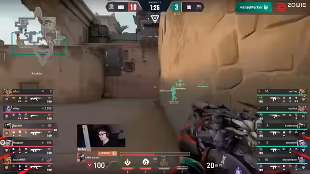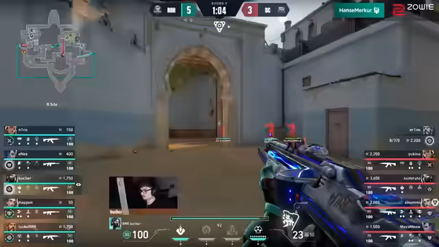 03:04:02Das Spiel beginnt auf Map Pearl mit einem furiosen Ansturm von Kaltstart. Das dominiert die Anfangsrunden und geht schnell mit 3-0 oder 4-0 in Führung. Ihr aggressives, fast überfallartiges Vorgehen nutzt die taktischen Fehler von Gesichtenhausen. Besonders auffällig ist die Performance von Richie, der in der Attack mit seinem Odin-Swarmet das Spiel nach Belieben lenkt und wichtige Picks erzielt. Kaltstart präsentiert sich als heißes Team, das den Druck auf Gesichtenhausen aufrechterhält und eine klare Dominanz in den ersten Minuten des Spiels zeigt.