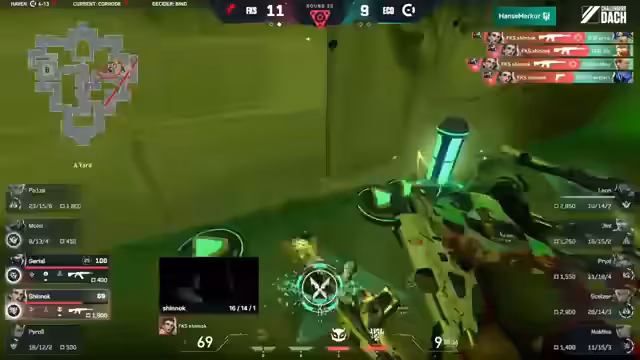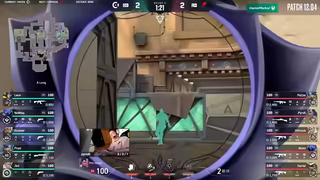 01:00:05Nachdem Eco in der elften Runde versucht hat, mit Solo-Peeks und Bandit-Schaden gegen Fokus vorzugehen, kontern Fokus kompromisslos. Pace nutzt eine Support-Smoke, um aggressiv vorzugehen, und sichert mit der Judge drei Kills. Die Runde geht klar an Fokus, die nun nur noch zwei Runden vom Map-Pick entfernt sind. Während Eco auf Haven eine veränderte Composition versucht, wirkt die Map für Fokus jedoch unkompliziert und wird konsequent zu ihrem Vorteil genutzt.
