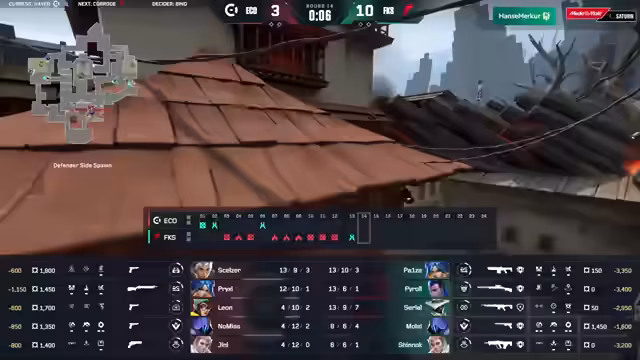 01:51:12Während Fokus fast perfekt in der Attack agiert und damit den Druck auf die Defensive von Eco erhöht, ist Scalzer von Eco der herausragende Spieler. Er sichert sich im 1-gegen-1-Duellen und mit First-Frakes Kills, die seinem Team in einer sonst schwierigen Situation Rundenpunkte retten. Seine aimstarken Einzelleistungen sind es, die Eko trotz der überlegenen Spielweise von Fokus noch im Match halten und eine respektable Leistung vom Underdog zeigen.