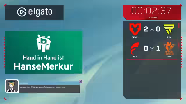 00:11:13Der Stream beginnt mit dem Start der Playoffs der HanseMerkur Challengers DACH. Czinski begrüßt die Zuschauer und hebt die intensive Stimmung hervor. Vor dem ersten Playoff-Match werden die Highlights der vergangenen Woche gezeigt, die von Überraschungen geprägt waren. Dazu zählt das starke 2-0 von ATX gegen Fokus und das langwierige, knappe Match zwischen Maus und DGN in Overtime. Auch Eintracht Frankfurt zeigte gegen Ryzen eine starke Leistung auf Ascent.