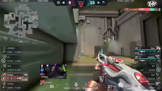 01:11:40Nach der deutlichen Niederlage auf Split geht es zur zweiten Map, Breeze, dem Map-Pick von Giant X. Die Kommentatoren sehen dies als Chance für die Stallions, sich auf der internationalen Bühne zu beweisen und Erfahrung gegen ein VCT-Team zu sammeln. Sie verweisen darauf, dass Giant X diese Map im bisherigen Kick-off noch nicht gewinnen konnte und sie noch nicht ganz gefestigt im Map-Pool ist. Beide Teams beginnen ohne Timeouts, was einem 'Gentleman's Agreement' gleichkommt, und spielen direkt auf den Sieg.