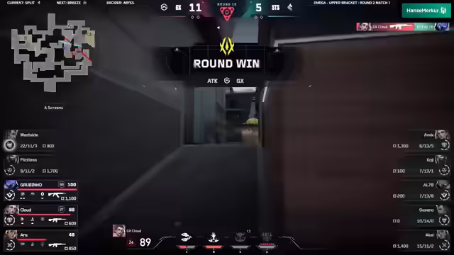 01:27:44Die Runden auf Breeze sind geprägt von hochwertigen Einzelspielerleistungen und smartem Teamplay. Cloud wird als bester Schadensspieler von Giant X identifiziert, während Akai der Stallions beeindruckende Shots landet. Dennoch zeigt Giant X eine starke Rotation in der Defense. Trotz einiger starker Aktionen von West Side der Stallions, baut Giant X kontinuierlich eine Führung auf. Entscheidend ist die Effizienz, mit der Giant X gewinnt, während die Stallions manchmal etwas 'cocky' agieren und nicht alle Chancen nutzen.